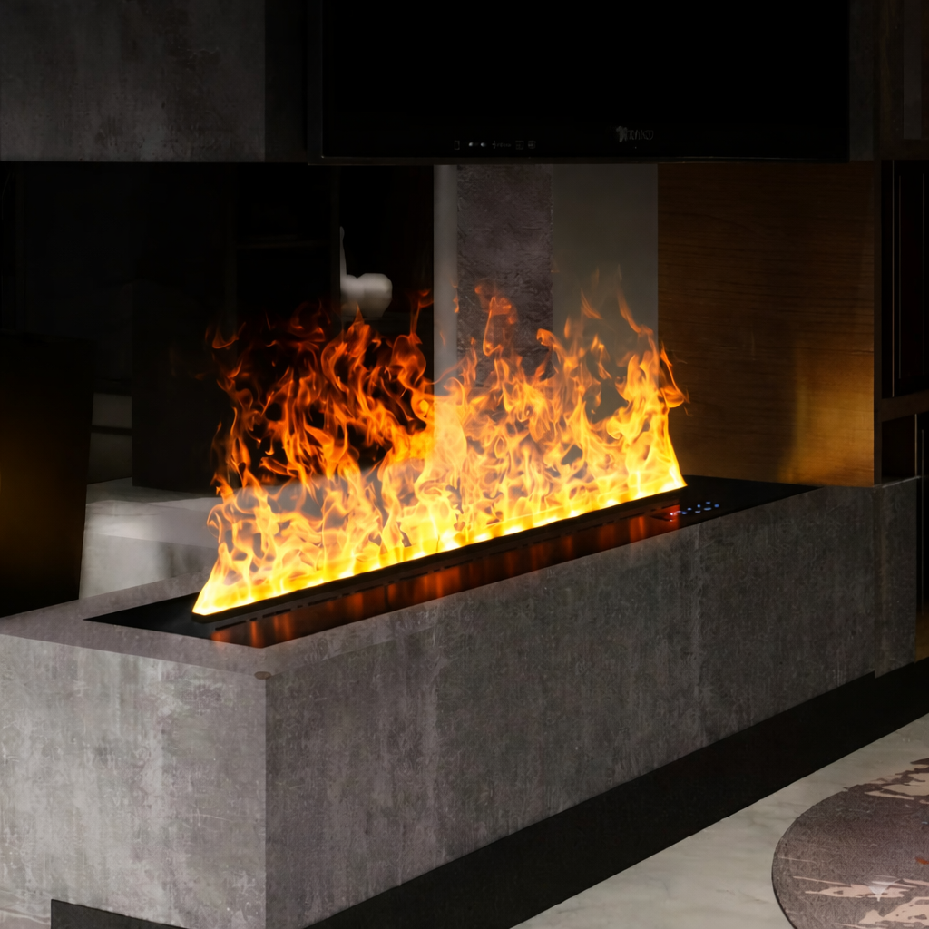From this search grew FRÉS - a 3D water-steam fireplace that creates a surprisingly realistic flame effect without heat, smoke and exhaust gases.